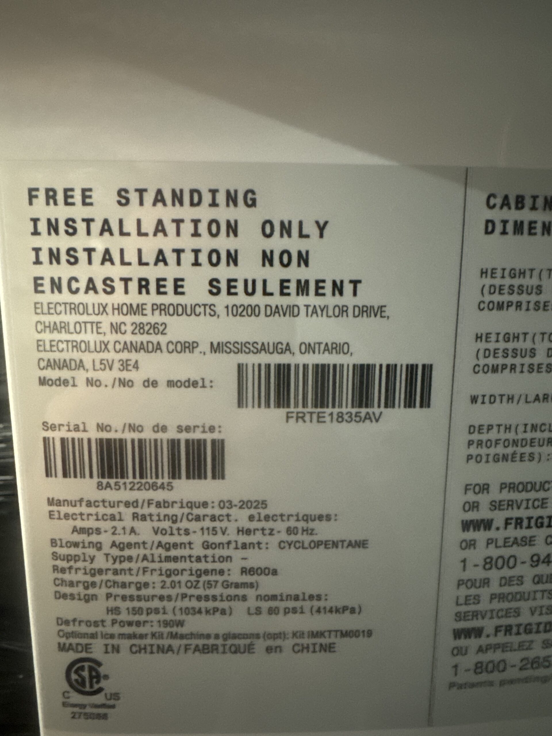 - ENERGY STAR® Most Efficient: Recognized as one of the most efficient products in its class, the FRTE1835AV helps you save money on utility bills while reducing your environmental footprint.